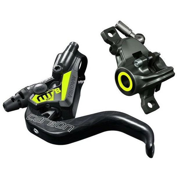 Le frein à disque hydraulique Magura MT8 SL est un frein Cross Country de compétition. Véritable poids plume, il ne fait cependant aucune concession en termes de performance. Associé à la poignée de frein légère Carbotecture SL et le levier de frein HC Carbone à 1 doigt, il révolutionne le marché en termes d’ergonomie et de dosage. Le Carbotecture SL est un matériau composite, qui, grâce aux fibres de carbone enrobées, est non seulement léger mais également très résistant. Quant au levier HC 1 doigt en carbone, il est plus léger que son homologue en aluminium et permet une augmentation de la puissance de freinage. L’étrier à 2 pistons est forgé d’un bloc, permettant une réduction de poids et augmentant la puissance de freinage et sa solidité.