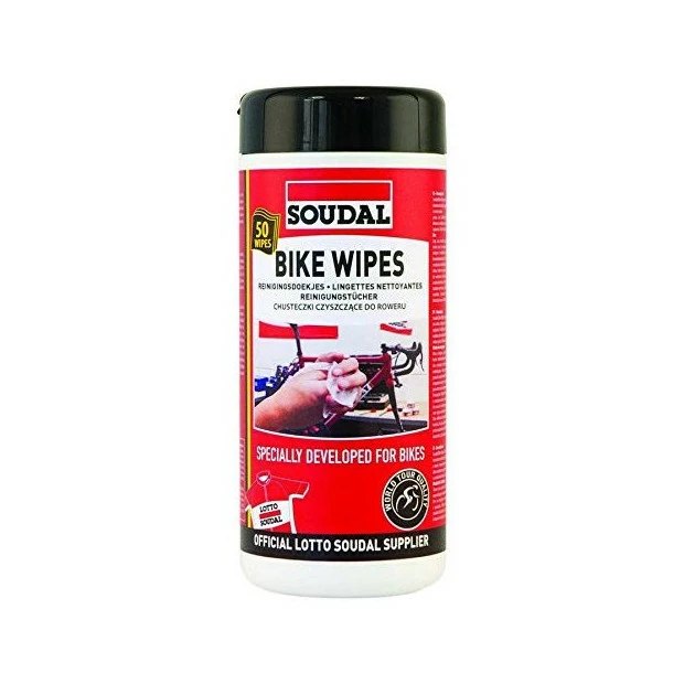 Les lingettes Soudal Bike Wipes ont été spécialement conçues pour supprimer rapidement et efficacement les saletés sur les vélos et sur les mains. Les lingettes enlèvent la graisse, le sable, l’huile et de nombreuses autres substances sales. Elles agissent rapidement et permettent un nettoyage complet en un seul passage.